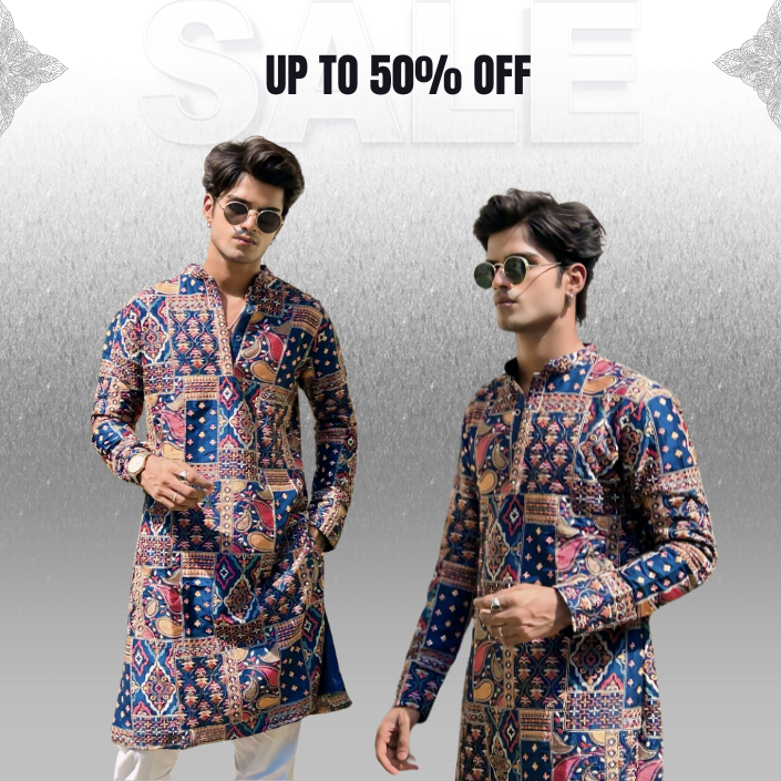 TRADITIONAL INDIGO BLUE PRINTED KURTA PAJAMA SET FOR MRN'S