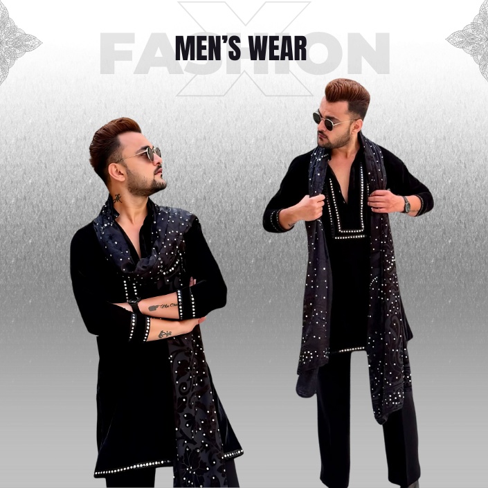 BLACK DAMON EMBROIDERY WORK KURTA SET FOR MEN